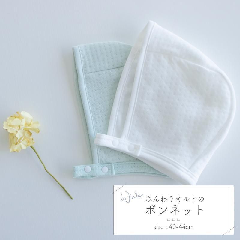 【ブルー値下げ】ふんわりキルトのボンネット 綿100% ホワイト/グリーン/サックスブルー/ピンク 40-44cm 日本製【メール便OK(02)】