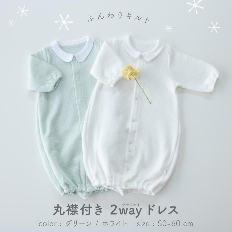 病みつきになる柔らかな肌触り!ふんわりキルトの丸襟付き2wayドレス 冬生まれ 50-60cm グリーン ピンク 日本製【メール便OK(10)】