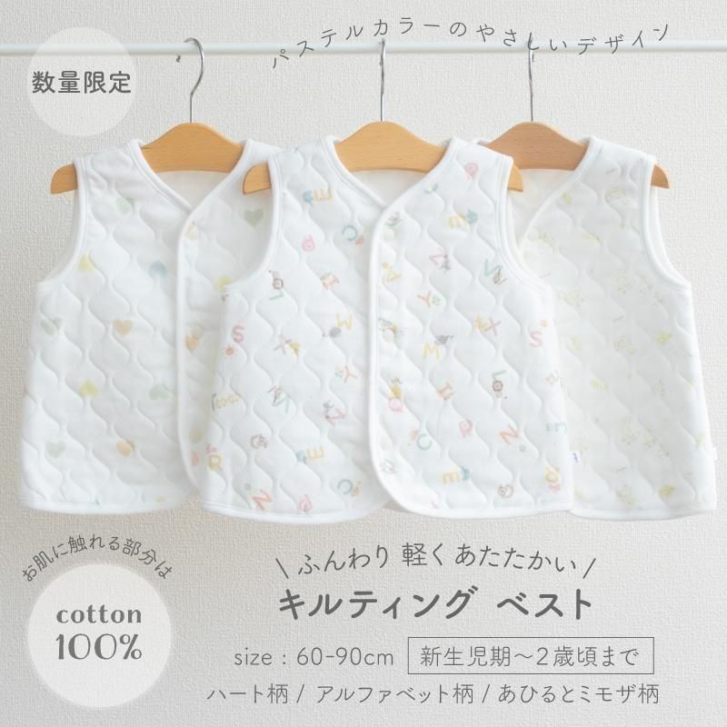 ふんわり軽くあたたかい キルティングベスト 60-90cm 日本製【メール便OK(10)】