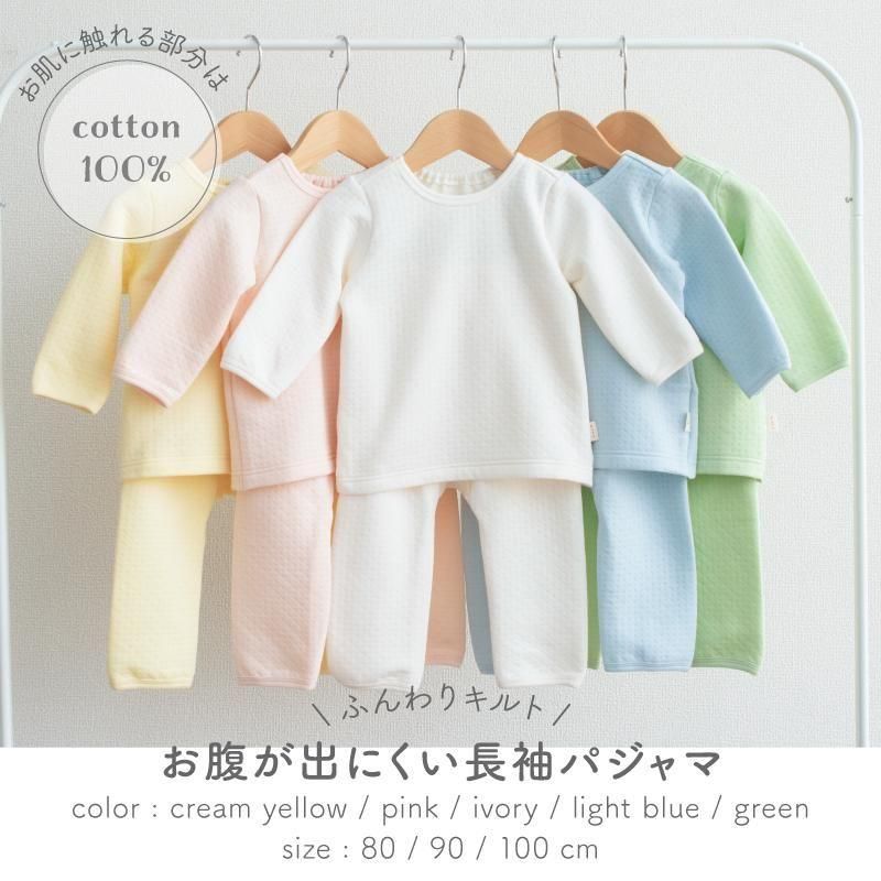 【10/20-27パジャマ&ケットまとめ買い対象】パパママも赤ちゃんもストレスフリー!ふんわりキルトの長袖パジャマ お腹が出にくい 日本製【メール便OK(10)】