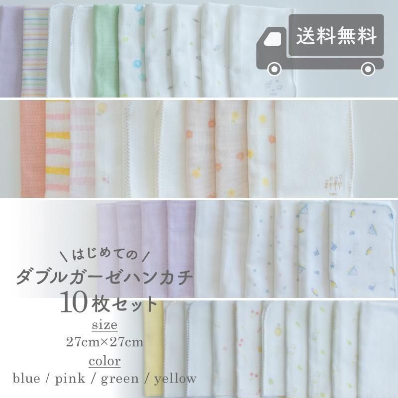 送料無料でお届け!【メール便OK(10)】はじめてのガーゼハンカチ10枚セット ダブルガーゼ 日本製 綿100%