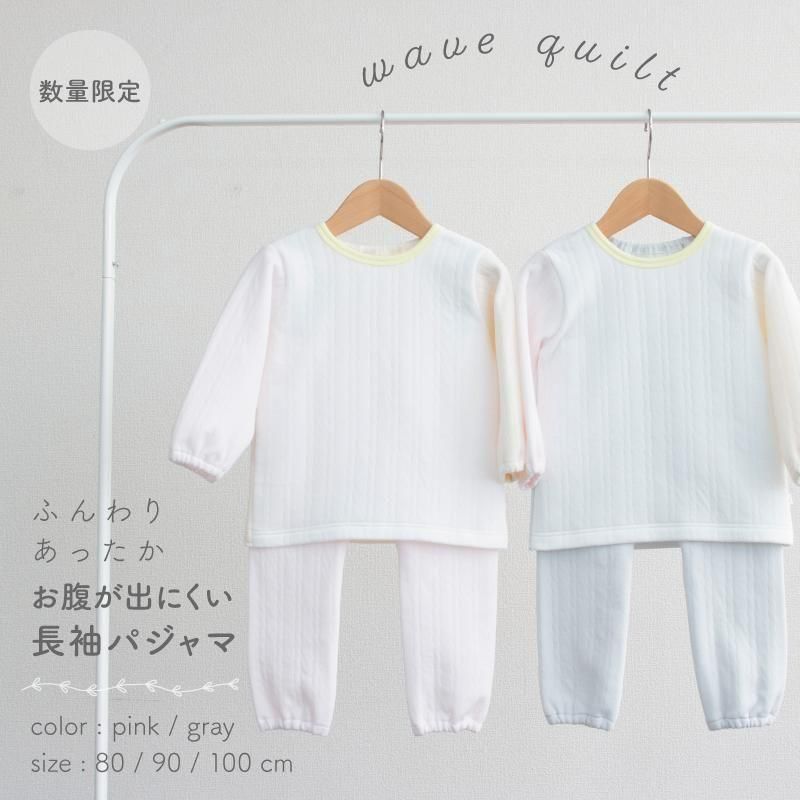 パパママも赤ちゃんもストレスフリー!少し厚手のウェーブキルトの長袖パジャマ 配色 お腹が出にくい【メール便OK(10)】