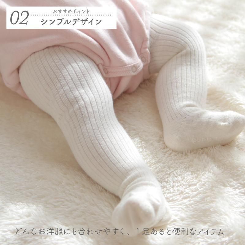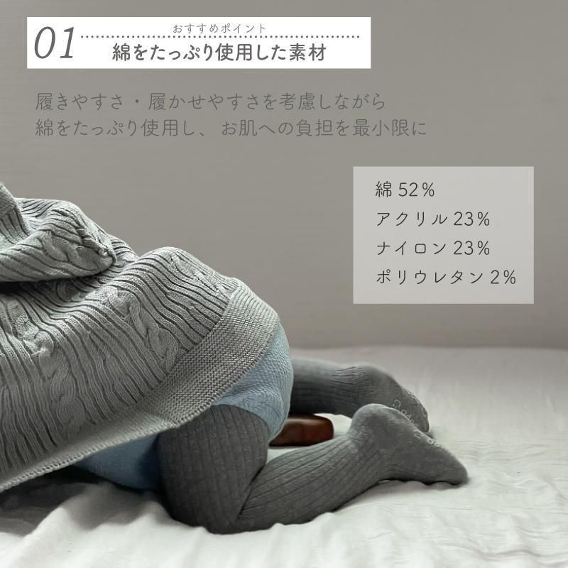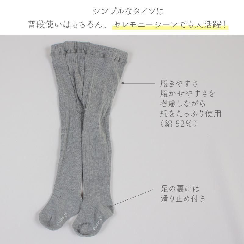おすすめ ポイント | ・ワンピースやロンパースなど様々な洋服に合わせやすいシンプルなタイツです。 ・リブ編みです。 ・履きやすさ・履かせやすさを考慮しながら綿をたっぷり使用しました。 |