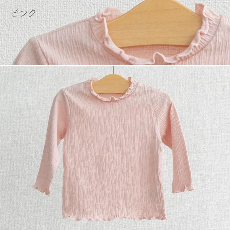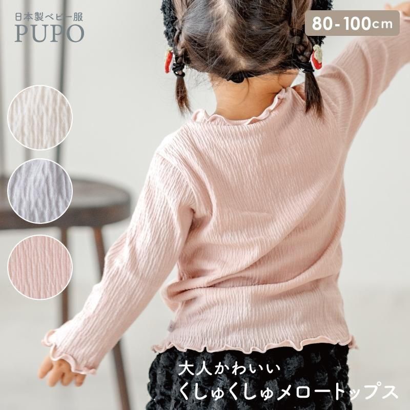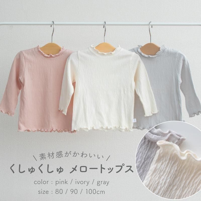 新色ピンク発売!【メール便OK(03)】シンプルだけどおしゃれに見える!くしゅくしゅメロートップス 80/90/100cm