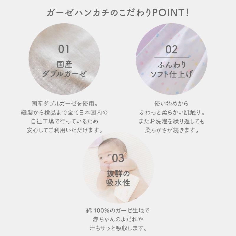 | おすすめ ポイント | ・はじめての出産準備におすすめ!10枚セットです。 ・送料無料でお届けします。 ・お肌に優しいやわらかガーゼハンカチです。 ・ふんわりソフトな肌触りの国産ダブルガーゼを使用しています。 ・普段使いに、授乳時や沐浴時等に、様々なシーンでご使用いただけます。 ・何枚あっても便利なアイテムです。 |