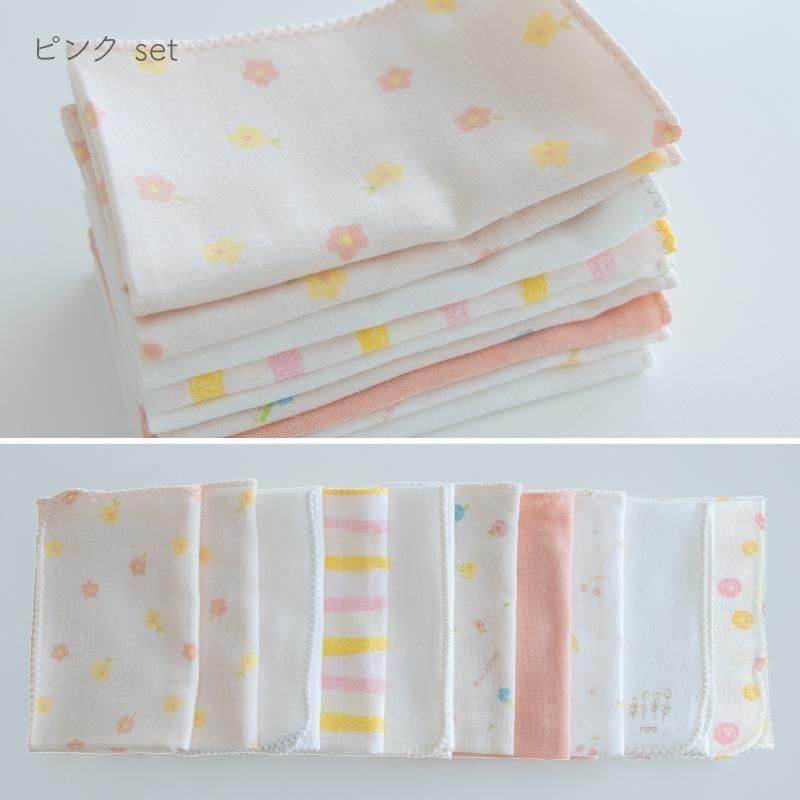 | セット内容2 | ピンクセット 花柄×2枚、無地(グレーステッチ)×1枚、クレヨンボーダー(ピンク)×1枚、無地(ベージュステッチ)×1枚、小花柄×1枚、無地(ピンク)×1枚、レモンフルーツ柄×1枚、ワンポイント(花柄)×1枚、ぐるぐるドット柄(ピンク)×1枚 |
